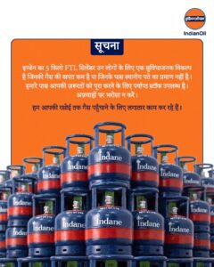 इसी तरह इण्डेन ने जानकारी देते हुए कहा है कि, इण्डेन का 5 किलो FTL सिलेंडर आसान, पोर्टेबल और बिना पते के प्रमाण के उपलब्ध है। यह छात्रों, युवा पेशेवरों और प्रवासी श्रमिकों के लिए खाना पकाने का एक आदर्श एवं भरोसेमंद समाधान है। कम खपत हो या अस्थायी ज़रूरत, यह हर स्थिति में आपका साथी है। LPG का पर्याप्त स्टॉक उपलब्ध है और सप्लाई लगातार जारी है। कृपया अफ़वाहों से दूर रहें और निश्चिंत रहें। हम हर दिन आपकी रसोई तक ऊर्जा पहुंचाने के लिए प्रतिबद्ध हैं।