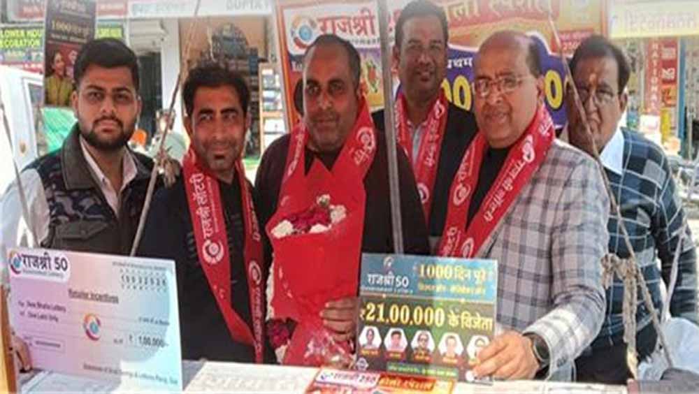 किस्मत ऑन सैलिब्रेशन ऑन के अंतर्गत अपने ईनामों का सिलसिला बरकरार रखते हुए 8 फरवरी 2026 के ड्रॉ में 21 लाख का 49वां पहला ईनाम खन्ना के स्टॉकिस्ट रामा लॉटरी के रिटेलर न्यू भाटिया लॉटरी द्वारा बेची गई टिकट नं. 72- 7328 से लगने पर कंपनी के अधिकारी राजकुमार वर्मा व भगत सिंह पंवार ने रामा लॉटरी के मालिक सुशील मग्गू व न्यू भाटिया लॉटरी के मालिक संदीप भाटिया, जतिंद्र भाटिया को फूलमाला पहना, गुलदस्ता, ट्रॉफी व इंसैंटिव का चैक देकर समानित करते हुए हार्दिक बधाई व शुभकामनाएं दीं। राजश्री-50 वीकली लॉटरी में अभी तक 21-21 लाख के 49 पहले ईनाम ईनाम लग चुके हैं जिनमें से 34 पहले ईनाम पंजाब मे व 15 महाराष्ट्र में लगे है।