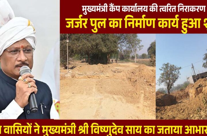 रायपुर : मुख्यमंत्री कैंप कार्यालय की पहल से जर्जर पुल के निर्माण की शुरुआत वर्षों से जोखिम उठाकर गुजर रहे...