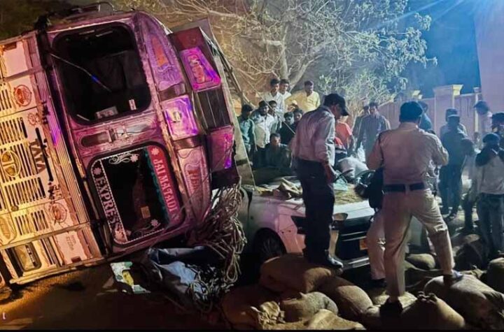 रायपुर रायपुर में रविवार रात एक दर्दनाक सड़क हादसे में धान से लदी ट्रक कार के ऊपर पलट गई। हादसे...