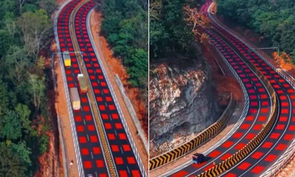 जबलपुर नेशनल हाईवे-12 वाइल्डलाइफ प्रोटक्शन के लिए की गई रेड कलर की टेबल टॉप रेड मार्किंग की वजह से चर्चा...