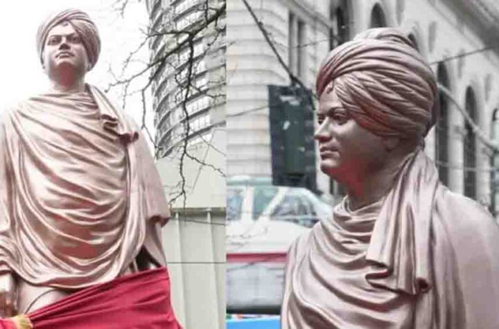 सिएटल के वेस्टलेक स्क्वायर में स्वामी विवेकानंद की पहली जीवन-आकार कांस्य प्रतिमा का अनावरण