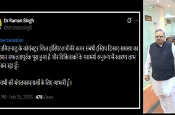 रायपुर. विधानसभा अध्यक्ष डॉ रमन सिंह का कोयंबटूर में स्लिप डिस्क का ऑपरेशन हुआ. डॉक्टर रमन सिंह का आपरेशन सफल...