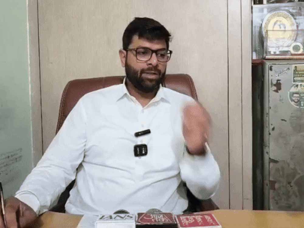 भिवानी के देवीलाल सदन में मीडिया से बात करते दिग्विजय चौटाला।