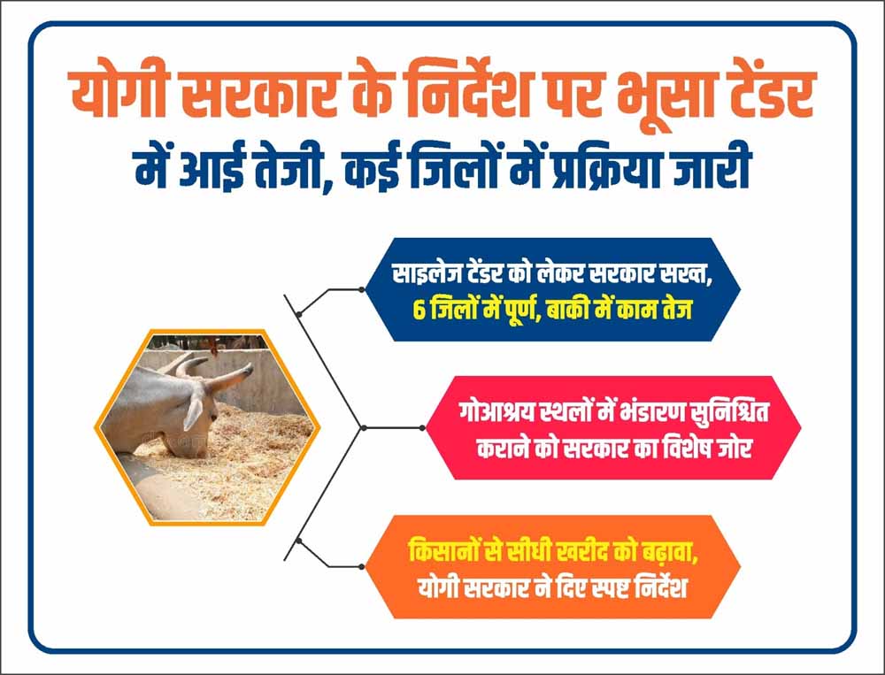 प्रदेश में गोवंश संरक्षण को लेकर योगी आदित्यनाथ सरकार एक्शन मोड में नजर आ रही है। भूसा और साइलेज की उपलब्धता सुनिश्चित करने के लिए सरकार ने टेंडर प्रक्रिया में तेजी लाने के स्पष्ट निर्देश दिए हैं। इसके तहत कई जिलों में टेंडर प्रक्रिया तेजी से आगे बढ़ रही है, जबकि 6 जिलों में साइलेज टेंडर की प्रक्रिया पूरी भी कर ली गई है। सरकार ने सभी जिलाधिकारियों और संबंधित अधिकारियों को निर्देशित किया है कि गोआश्रय स्थलों पर चारे की किसी भी प्रकार की कमी न होने पाए। खासतौर पर गर्मी के मौसम को देखते हुए भूसा और साइलेज का पर्याप्त भंडारण सुनिश्चित करने पर विशेष जोर दिया जा रहा है। शासन स्तर से लगातार मॉनीटरिंग की जा रही है, जिससे प्रक्रिया में पारदर्शिता और गति बनी रहे।