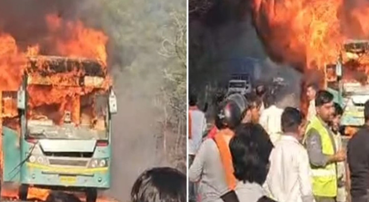 चलती बस में लगी आग, जान बचाने खिड़कियों से कूदे यात्री, इंदौर-भोपाल हाईवे की घटना