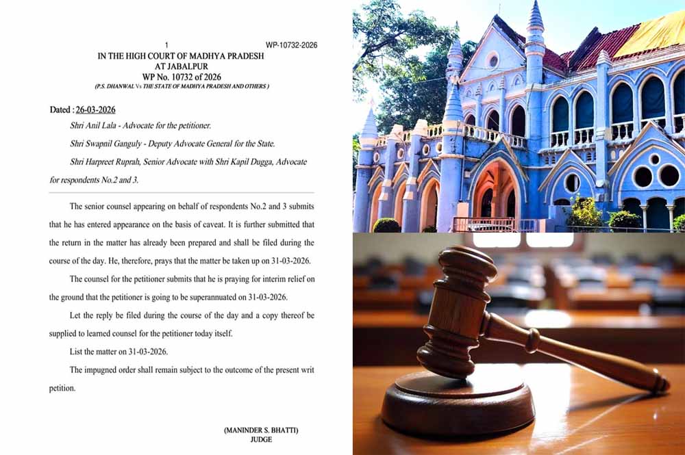 अपेक्स बैंक द्वारा दिनांक 22-3-26 को आदेश क्रमांक मप्रमु/13/केडर/प्रसं/2979 से जिला सहकारी केंद्रीय बैंक मर्यादित सीधी के निलंबित मुख्य कार्यपालन अधिकारी पीएस धनवाल द्वारा जबलपुर उच्च न्यायालय में अपने निलंबन आदेश को चुनौती देते हुए याचिका क्रमांक 10732/2026 प्रस्तुत की थी । इस याचिका में माननीय उच्च न्यायालय की एकल पीठ के माननीय न्यायमूर्ति मनिंदर सिंह भट्टी की पीठ के समक्ष दिनांक 26 मार्च 2026 की तिथि सुनवाई के लिए नियत की गई थी, जिसमें धनवाल के अधिवक्ता द्वारा निलंबन आदेश को स्थगित करने का निवेदन किया गया, जिस पर अपेक्स बैंक की ओर से वरिष्ठ अधिवक्ता हरप्रीत सिंह रूपरा एवं अधिवक्ता कपिल दुग्गल एवं शासन की ओर से उपमहाधिवक्ता स्वप्निल गांगुली ने पुरजोर विरोध करते हुए तर्क किया कि उनका जवाब तैयार है एवं जवाब पेश होने के उपरांत ही मुकदमे की सुनवाई करने का निवेदन किया ।