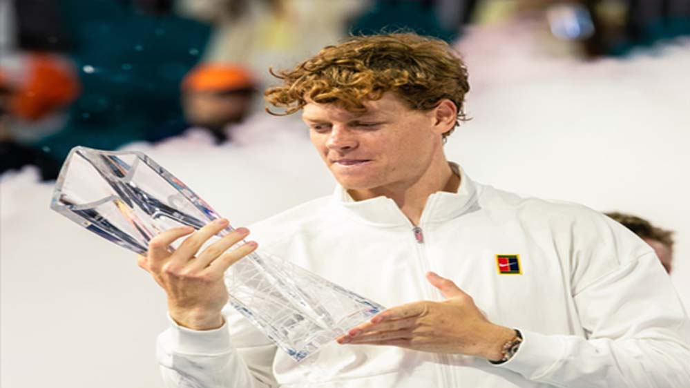 इटली के स्टार टेनिस खिलाड़ी जैनिक सिनर ने मियामी ओपन का खिताब जीत लिया है। उन्होंने फाइनल मुकाबले में चेक गणराज्य के जिरी लेहेका को 6-4, 6-4 से हराया। इस जीत के साथ ही सिनर ने 'सनशाइन डबल' भी पूरा किया। जैनिक सिनर फाइनल में जिरी लेहेका को 6-4, 6-4 से हराकर 2017 में रोजर फेडरर के बाद एक ही सीजन में इंडियन वेल्स और मियामी जीतने वाले पहले पुरुष खिलाड़ी बन गए। इसके अलावा, सिनर दोनों इवेंट्स में एक भी सेट गंवाए बिना यह उपलब्धि हासिल करने वाले पहले खिलाड़ी हैं।
