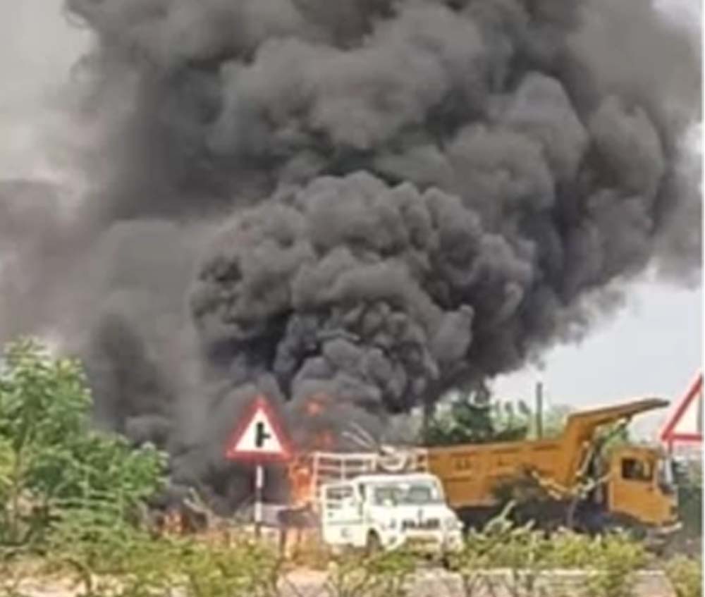 मशीन में आग लगते ही चालक ने घबराने के बजाय तुरंत समझदारी दिखाई। उसने जलती हुई गाड़ी को सड़क के बीच से हटाकर किनारे उतार दिया। चालक का यह निर्णय बेहद अहम साबित हुआ। जैसे ही वाहन सड़क से नीचे उतरा, उसी समय उसमें जोरदार विस्फोट हो गया।