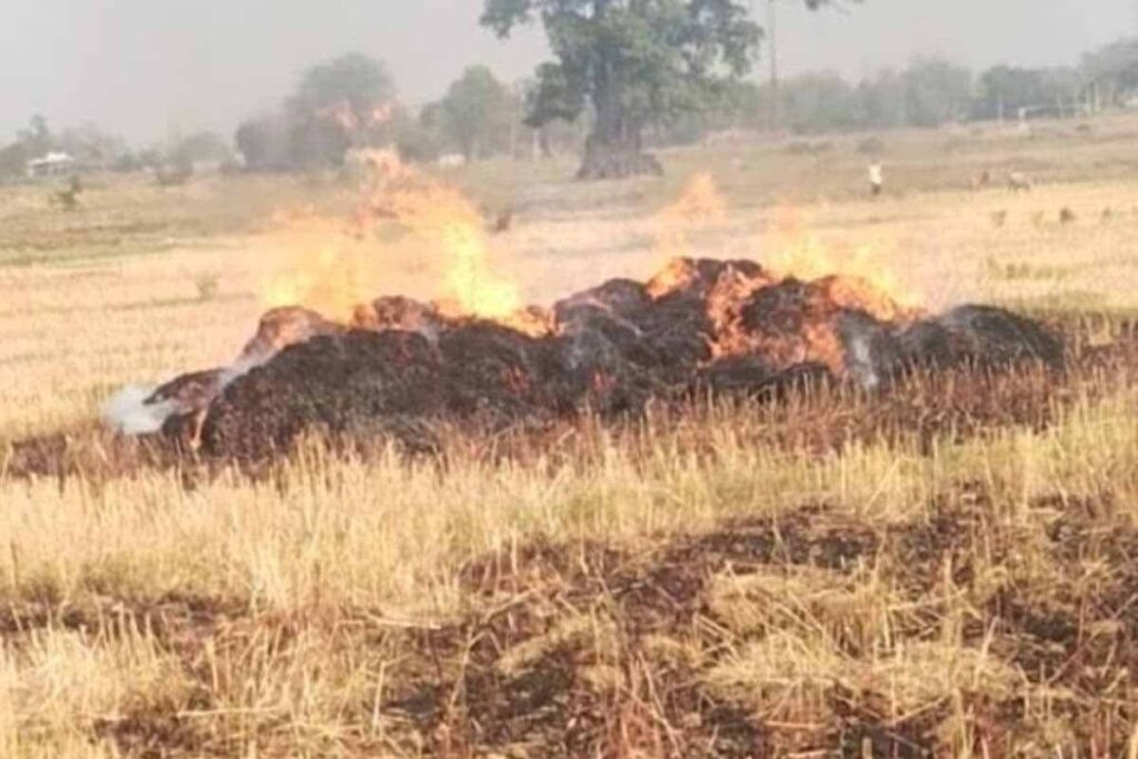 खलिहान में रखे गेहूं में अचानक लगी आग
