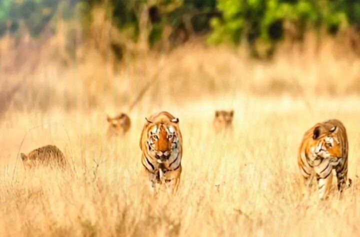 खिवनी अभयारण्य में दुर्लभ दृश्य: सड़क पर दिखा बाघ परिवार, 20 मिनट तक थमी रही टूरिस्ट की सांसें