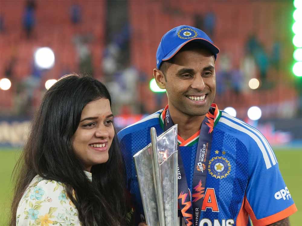 टी20 विश्व कप विजेता कप्तान सूर्यकुमार यादव ने अपनी जिंदगी और करियर में पत्नी देविशा शेट्टी की भूमिका पर खुलकर बात की है। इंटरव्यू में उन्होंने बताया कि कैसे करीब 8 साल पहले पत्नी से एक बहुत ही छोटी सी बातचीत ने उनकी जिंदगी बदल दी, करियर को लेकर नजरिया बदल दिया। उनकी पत्नी के सीधे सरल सवाल ने ही उन्हें राष्ट्रीय टीम में जगह बनाने के लिए कड़ी मेहनत करने को प्रेरित किया और अब जबकि सूर्यकुमार यादव विश्व कप विजेता कप्तान बन चुके हैं, तो वे अपनी 'बेहद निश्छल' पत्नी देविशा की जितनी भी प्रशंसा करें वह कम है क्योंकि उन्होंने ही उन्हें इस मुकाम पर पहुंचाने में अहम भूमिका निभाई।