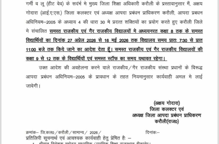 करौली में हीटवेव का असर, कक्षा 1 से 8 तक स्कूल टाइम बदला