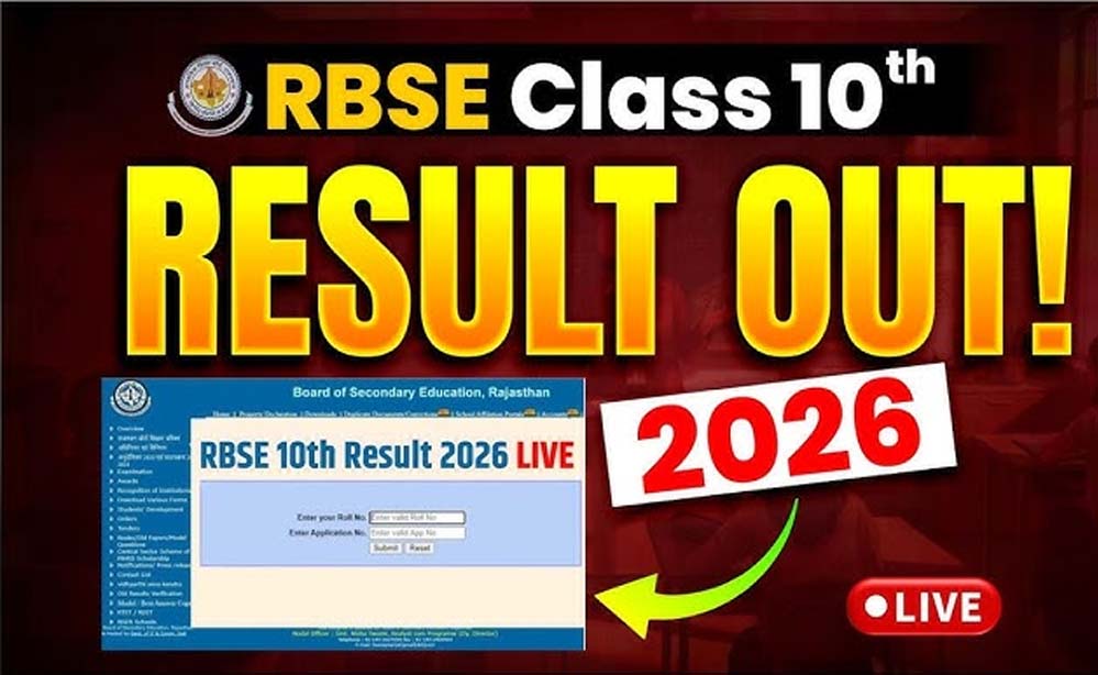 राजस्थान माध्यमिक शिक्षा बोर्ड (RBSE) के लाखों छात्रों का इंतज़ार आज खत्म हो गया है. बोर्ड ने 10वीं कक्षा (Secondary) का वार्षिक परीक्षा परिणाम घोषित कर दिया है. इस साल का कुल पास प्रतिशत 94.23% रहा है. छात्र अपना रिजल्ट बोर्ड की आधिकारिक वेबसाइट rajeduboard.rajasthan.gov.in और rajresults.nic.in पर देख सकते हैं।