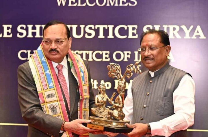 रायपुर मुख्यमंत्री विष्णु देव साय ने भारत के माननीय मुख्य न्यायाधीश न्यायमूर्ति सूर्यकांत के छत्तीसगढ़ आगमन पर पुष्प गुच्छ भेंटकर...