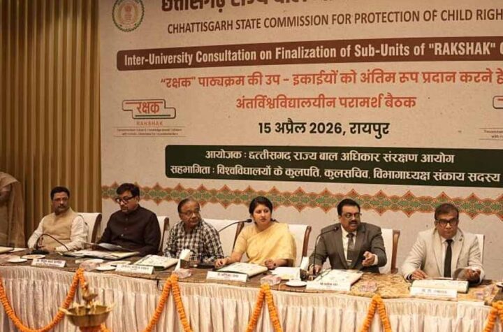 रायपुर. छत्तीसगढ़ राज्य बाल अधिकार संरक्षण आयोग, रायपुर द्वारा “रक्षक (RAKSHAK) पाठ्यक्रम” को राज्य में प्रभावी रूप से लागू करने...