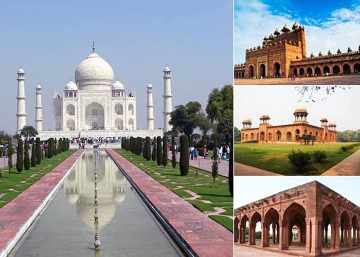 ताजमहल, फतेहपुर सीकरी, सिकंदरा, इत्माद उद दौला, सूर सरोवर, चौसठ खम्भा, रोमन कैथोलिक कब्रिस्तान, चिनी का रौजा, मरियम का मकबरा, राजा जसवंत सिंह की छत्री, दयाल बाग, गुरु का ताल