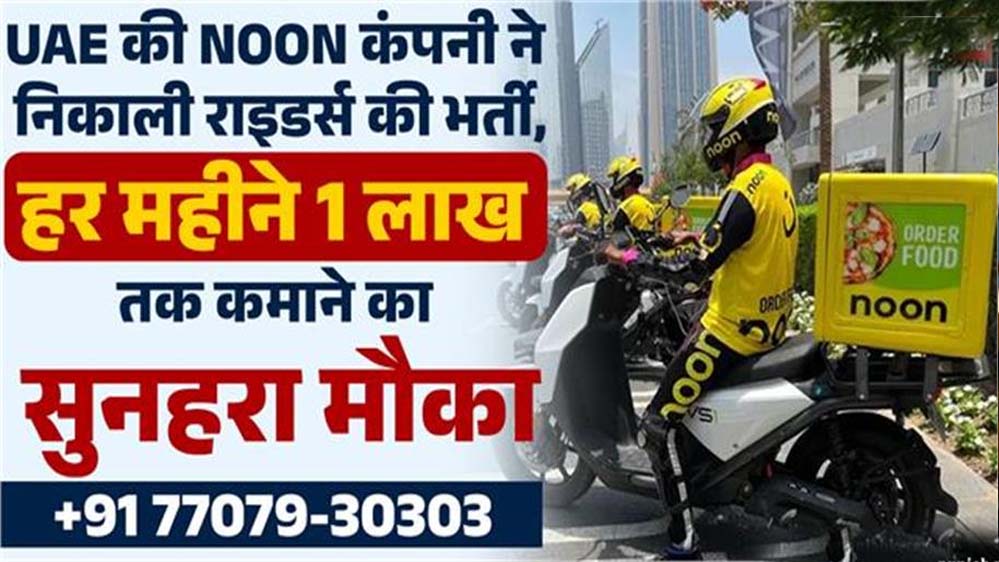 खाड़ी देशों (UAE) में करियर बनाने का सपना देख रहे भारतीय युवाओं के लिए एक बड़ी खुशखबरी आई है। दुनिया की प्रसिद्ध ई-कॉमर्स और डिलीवरी कंपनी ‘नून’ (Noon) बड़े स्तर पर डिलीवरी राइडर्स की भर्ती कर रही है। बता दें कि ‘नून’ मशहूर ‘एमार ग्रुप’ (Emaar Group) का हिस्सा है, जिसने दुनिया की सबसे ऊंची इमारत बुर्ज खलीफा का निर्माण किया है।