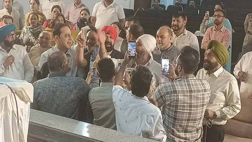 जालंधर नगर निगम की हाउस बैठक सोमवार को उस समय हंगामे में बदल गई, जब मेयर वनीत धीर ने वित्त वर्ष 2026-27 के लिए 569.40 करोड़ रुपये का बजट पेश किया। बजट पेश होते ही विपक्षी दल कांग्रेस और भारतीय जनता पार्टी के पार्षदों ने शून्य काल शुरू करने की मांग को लेकर जोरदार नारेबाजी शुरू कर दी।