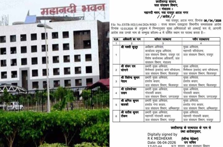 जल संसाधन विभाग में बड़ा फेरबदल: शंकर ठाकुर बने प्रमुख अभियंता, कई अधिकारियों को नई जिम्मेदारी